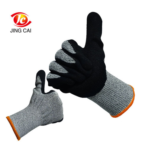 징카이 스플래시 가드 HPPE 컷방지 CE 레벨 5 장갑 저렴한 라텍스 손바닥 코팅 컷방지 장갑
