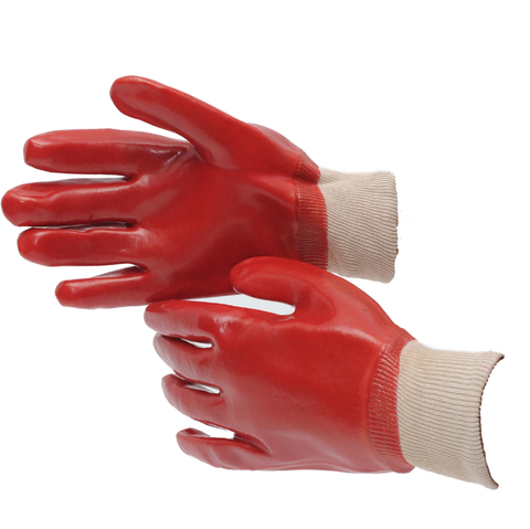 빨간색 PVC 안전 장갑, 싱글 딥 스무스 마감, 폴리에스터 면 인터록 라이너, 건틀릿 (CE)